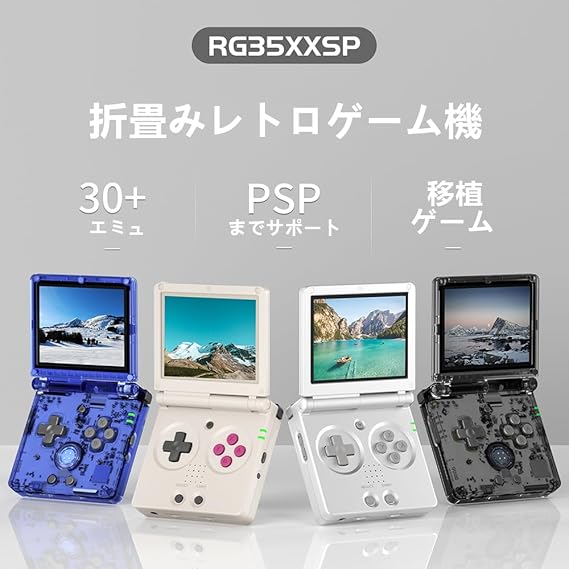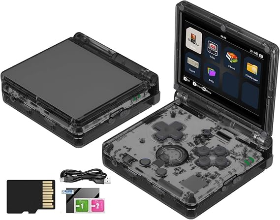 Anbernic RG35XXSP Flip 携?型ゲーム機 折畳みレトロゲーム機 Linuxシステム搭載 3.5インチスクリーン 日本語対応 WiFi/Bluetooth機能 3300mAh 64GB 透明黑 a