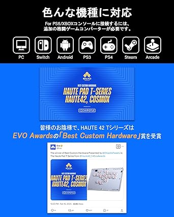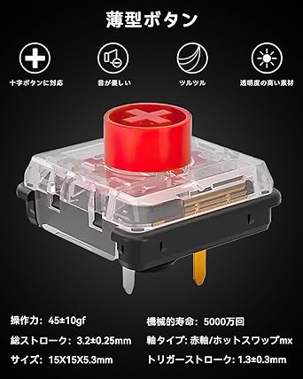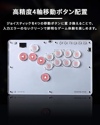 【薄型ロープロ13ボタン仕様のレバーレスアケコン】 薄型で天板広め、ロープロファイルのスイッチを搭載した16ボタンのレバーレスコントローラーです。 従来のファイトスティックを超え、格闘ゲームにはすばやく操作できるレバーレスタイプがおすすめです。進化した高精度の4つの方向ボタンと高速メカニカルキースイッチを備え、ゲームプレイ時の入力エラーを排除し、より早くより正確な操作を実現しました。対応機種:Windows 10以降/ Steam Deck/PS3/PS4/Switch/Raspberry Pi
