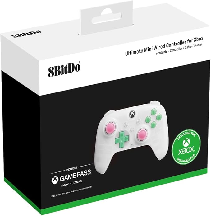 8BitDo Ultimateミニの Xbox 用有線コントローラー、RGB ライティング ファイヤー リング、ホール効果ジョイスティックとトリガー付き、Xbox シリーズ X|S、Xbox One、Windows 10/11 用 - 正式ライセンス(半透明の白) a