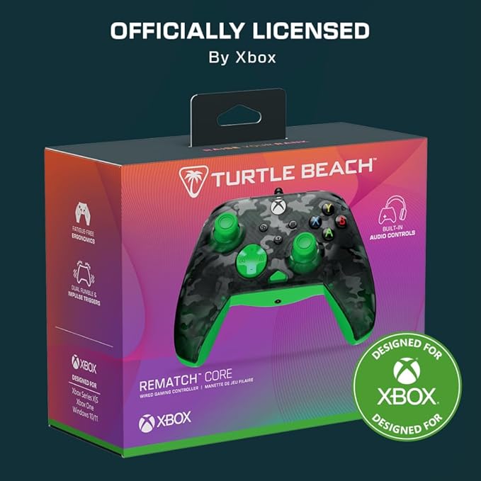 【Amazon.co.jp限定】TURTLE BEACH コントローラー Rematch Coreゴースト カモブラック&グリーン 有線 USB Xbox公認 PC/Xbox Series X|S対応 チャットミックス マイクミュート 人間工学【メーカー保証2年+代理店保証6ヶ月】 a