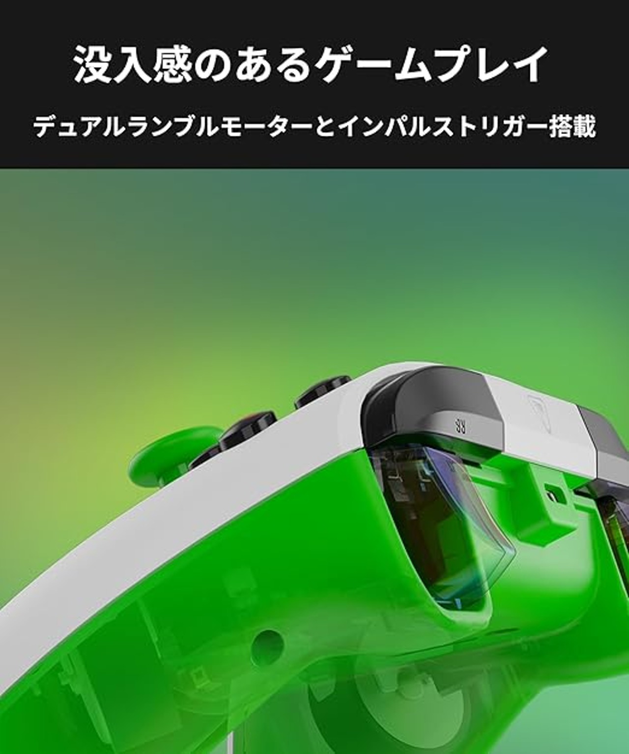 【臨場感あふれる振動フィードバック】 デュアルランブルモーターとインパルストリガーにより、アクションや爆発の迫力をリアルに再現。