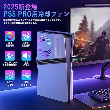 PS5 Pro用冷却ファン【新登場-自動温度検出】Lwuckbarrt PS5 Pro用 冷却 自動温度検出 3風速調整可能 効率的な冷却システム LEDライト付き USB2.0*2 サイドフェイスプレート冷却ファン USBポート付雰囲気作り PS5 Pro周辺機器 アクセサリー 低騒音 熱対策 急速冷却 プレステ5 Pro用冷却 ディスク通常版/デジタル版対応 (PS5 Pro用) a
