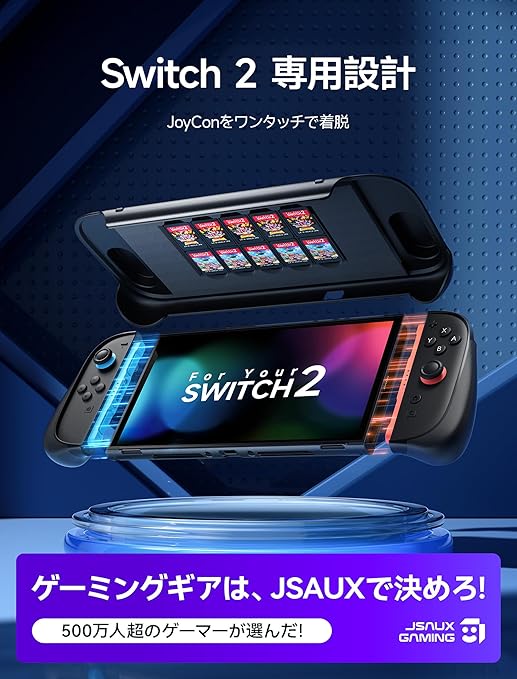 JSAUX 分体式保護ケース(Switch 2対応)|TPU製ミドルフレーム&PC製フェイスカバー|滑り止め付きエルゴノミックグリップ|ゲームカード10枚収納|スタンド使用対応|衝撃吸収&傷防止(PC0114) a