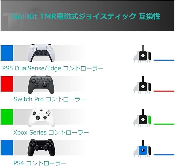 GuliKit ジョイスティック TMR電磁式 ドリフト対策 PS5 DualSense/DualSense Edge対応 超スムーズ 交換修理パーツ 長寿命 温度安定性に優れる スティックキャップ2個付属 a