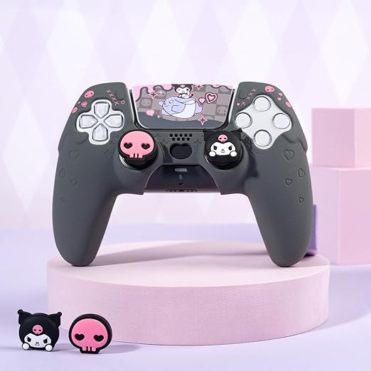 Kuitmor PS5コントローラーカバー シリコン製 ソフト スキンケース PS5コントローラーカバーとシール付け 保護ケース プレイステーション5保護カバー PS5保護カバー 可愛い コントローラー対応 簡単装着 滑り止め 耐衝撃 ほこり防止 ブラック a
