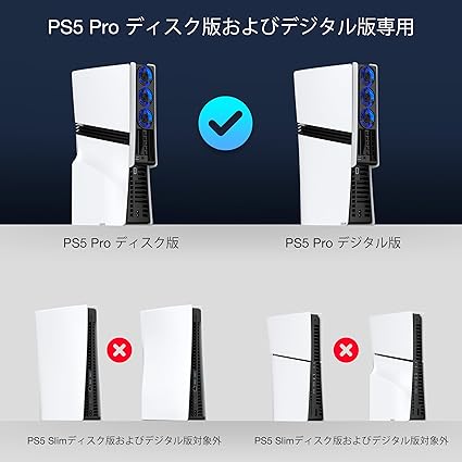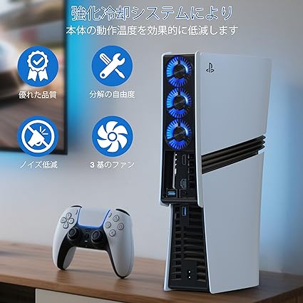 【互換性に関するお知らせ】PS5 Proデジタル/ディスクエディションコンソール用に特別に設計されています(垂直方向と水平方向の両方に対応)。 このPS5 Proアクセサリークーラーは3つのファンで構成されており、熱を均等に分散し、PS5システム全体から熱を素早く放散します。過熱の問題や誤動作の遅れを防ぎ、PS5 Proを涼しくスムーズに稼働させ、コンソールの寿命を大幅に向上させます。 注:【PS5 Slim/PS5 旧型非対応】