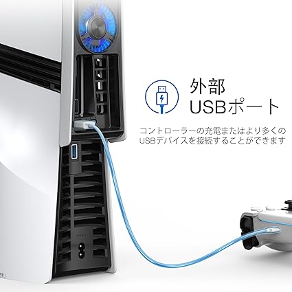 JUSPRO PS5 Pro用冷却ファン 静音強化クーラーファン 速度調整可能 自動電源オン/オフ 冷却アクセサリー USB 3.0ポートとLEDライト付き PlayStation 5 Pro用 【PS5 Slim/PS5 旧型非対応】 a