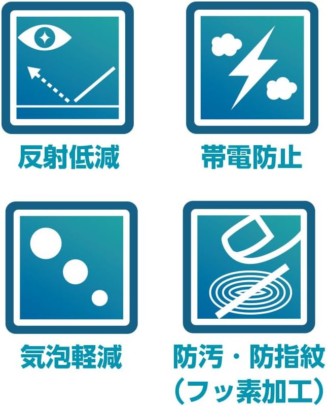 空気が入りにくく気泡が抜けやすい仕様です。フッ素加工により指紋や皮脂等の汚れが付きにくく、簡単に拭き取れます。