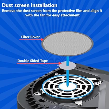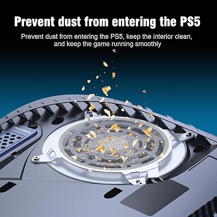 PS5アクセサリー防塵メッシュのデザインがファンの通気スロットに取り付けられており、ファンの開口部にほこりが落ちるのを防ぎます。
