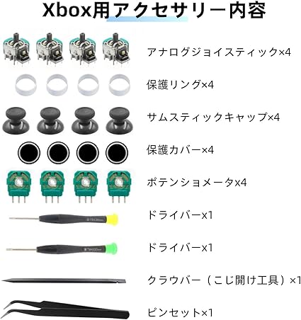 Xbox Oneコントローラー専用 メタル軸心ジョイスティック修復キット【4点組+防漂移モジュール】10K3Ωポテンショメーター同梱 プロ用工具セット付属 a