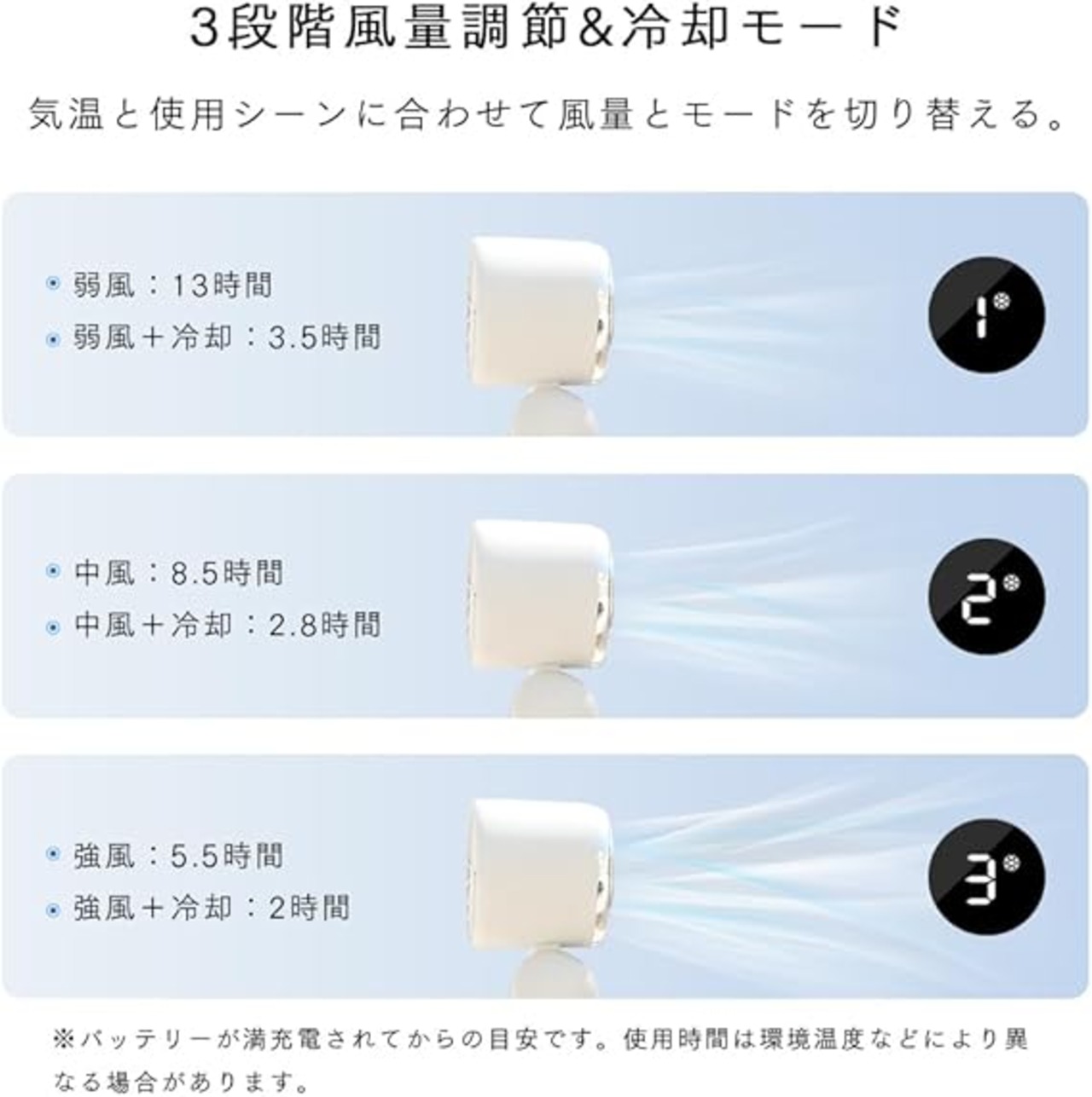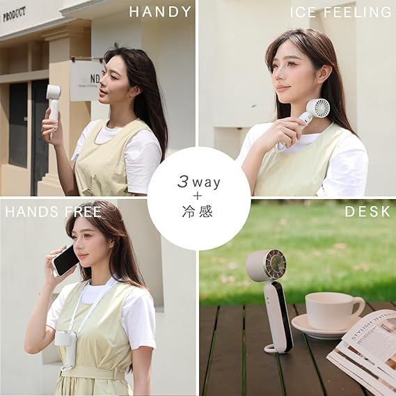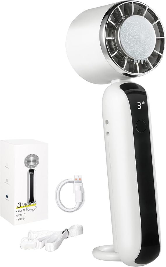 【冷感風!プロ級冷却パフォーマンス】この携帯扇風機は独自開発の半導体冷却システム(ペルチェ急速冷却技術)を搭載し、顔や首筋、手首などに当てることで瞬間的な涼しさを実感できます。強風と半導体冷却プレート技術の相乗効果で、メイク崩れを防ぎながらマスク内のムレ感を大幅に低減できます。風力だけで温度を下げる従来の扇風機と比べ、寒さを感知する氷の技術は、特に敏感肌や汗をかきやすい人に、より直接的な冷却体験をもたらします。冷却グッズとして熱中症対策を革新します。コンパクトかつ超軽量なデザインで、持ち運びや収