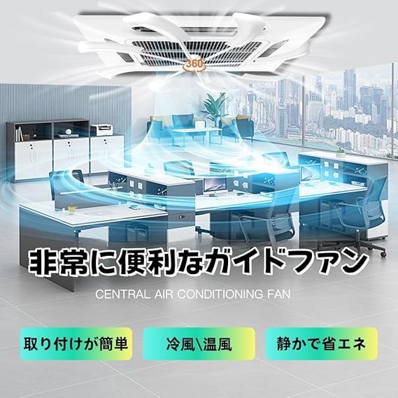 【快適な風の拡散】このエアコン用ファンは、エアコンからの空気を効率的に取り込み、部屋全体に均等に拡散します。従来のように強風が直接当たる心配がなく、温度差を解消します。