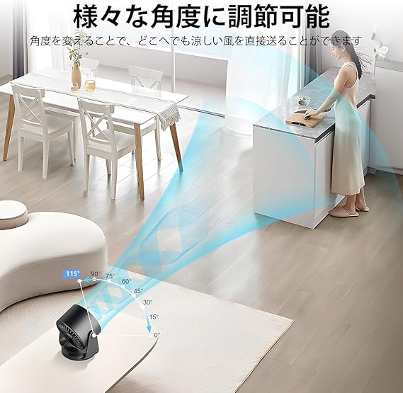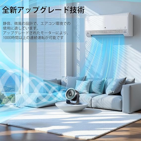 BKJANYO サーキュレーター 扇風機 卓上扇風機 静音 小型 壁掛け Type-C充電式 強力 強風 LEDデジタル表示 節電対策 7枚羽根 (ブラック) a