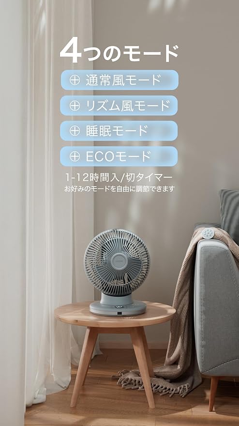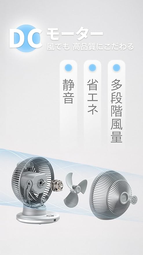 【静音&省エネ】DCモーターを搭載していてパワフルだけでなく、高い静音性と省エネ性を同時に実現しました。(風力1において23dB)就寝時に最適、眠りに優しい睡眠モードも搭載!