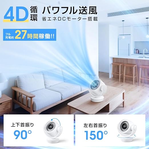 サーキュレーター 【2025年革新アップ 極静音 節電対策】 卓上扇風機 DCモーター 小型 扇風機 首振り 卓上せんぷうき扇風機 静音 上下/左右 充電式 無段階風量調整(1~100) タイマー機能付 usb 12000mAh LEDディスプレイ 省エネ リモコン付き 換気/空気循環/部屋干し/冷房 強力送風 梅雨除湿 衣類乾燥 サーキュレーター 日本語取扱説明書付き b