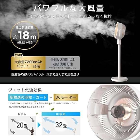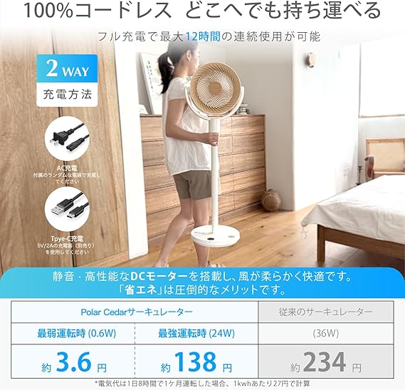 Polar Cedar サーキュレーター 扇風機 静音 22dB DCモーター 360度首振り 32畳 充電式 コードレス バッテリー搭載 上下左右 首振り 4モード 9段階風量 3段高さ調節 タイマー リモコン付き 常夜灯搭載 冷房 パワフル送風 空気循環 DC 省エネ 梅雨 部屋干し コンパクト収納 お手入れ簡単 寝室 脱衣所 トイレ キッチン 【2025年新登場 静音強風 猛暑対策】 a