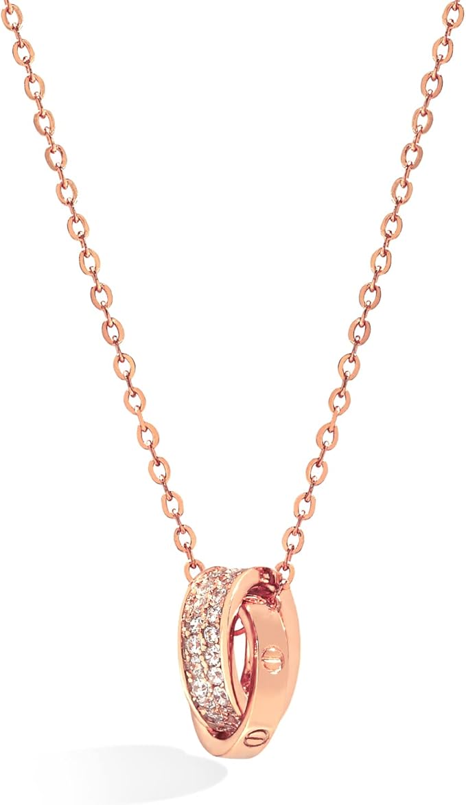 [Pasurohu] ネックレス レディース K18 18金コーティング シルバー925 最高級キュービックジルコニア ペンダント ダブルリング 人気 華奢 ローズゴールド ゴールド プラチナ アジャスター付き 金属アレルギー対応 本物ジュエリー