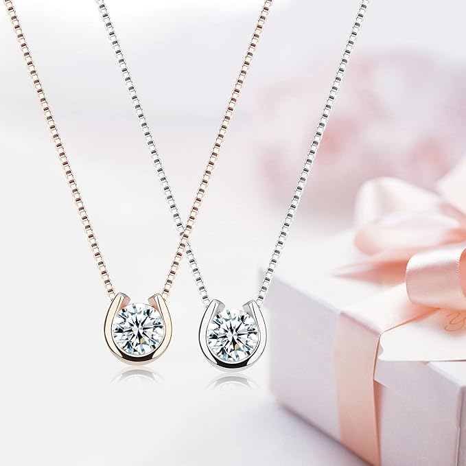 [HAH] ネックレス レディース ラッキーモチーフ 馬蹄 ホースシュー シンプル 一粒 1カラット 6mm シルバー925ベネチアン 金属アレルギー対応 46cmフリーアジャスター (プラチナ ゴールド仕上げ 誕生日プレゼント 女性 彼女 妻)