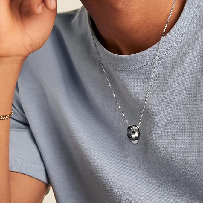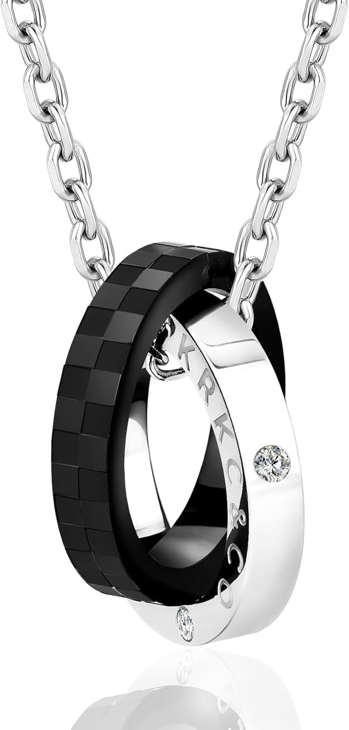 KRKC&CO リングネックレス メンズ ペンダントトップ チェーンネックレス ダブルリング サージカル ステンレス ペアネックレス 男女兼用 シルバー ブラック 金属アレルギー対応 誕生日 記念日 プレゼント