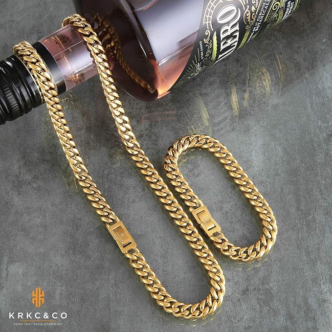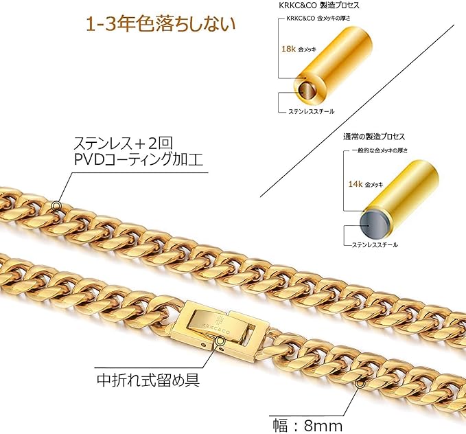 KRKC&CO 喜平ネックレスとブレスレットセット メンズ 幅8mm マイアミキューバンチェーン 18kgp キヘイ 4面カット アクセサリー HIPHOP プレゼント 誕生日 ギフト クリスマス