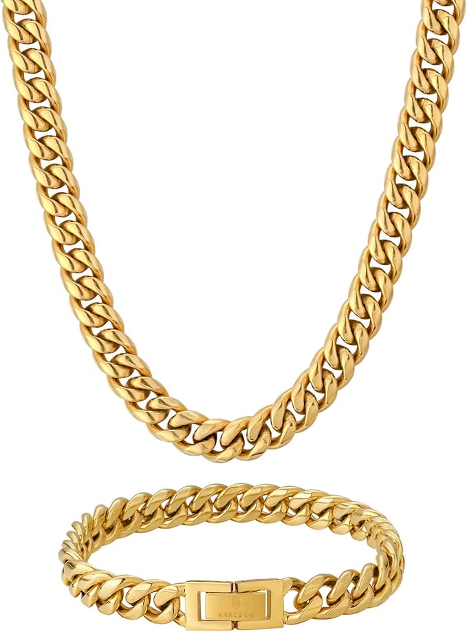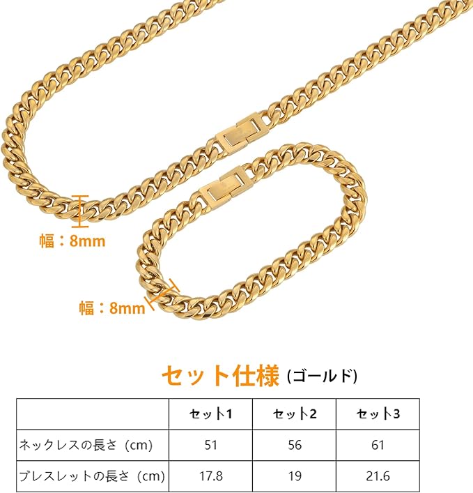 KRKC&CO 喜平ネックレスとブレスレットセット メンズ 幅8mm マイアミキューバンチェーン 18kgp キヘイ 4面カット アクセサリー HIPHOP プレゼント 誕生日 ギフト クリスマス a