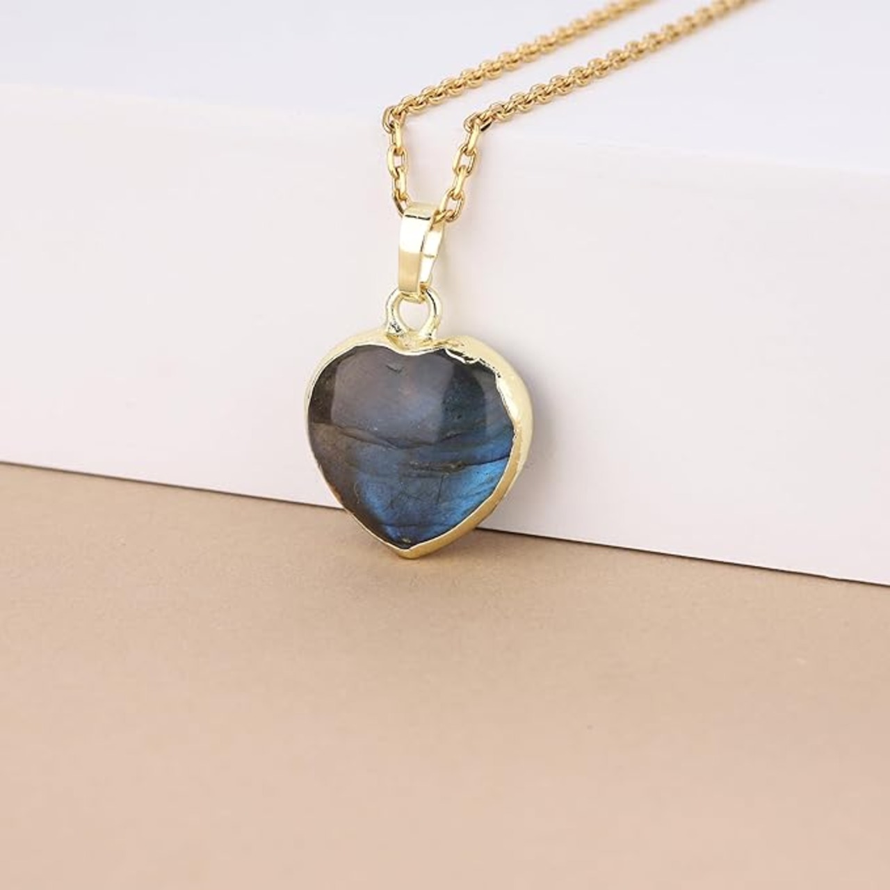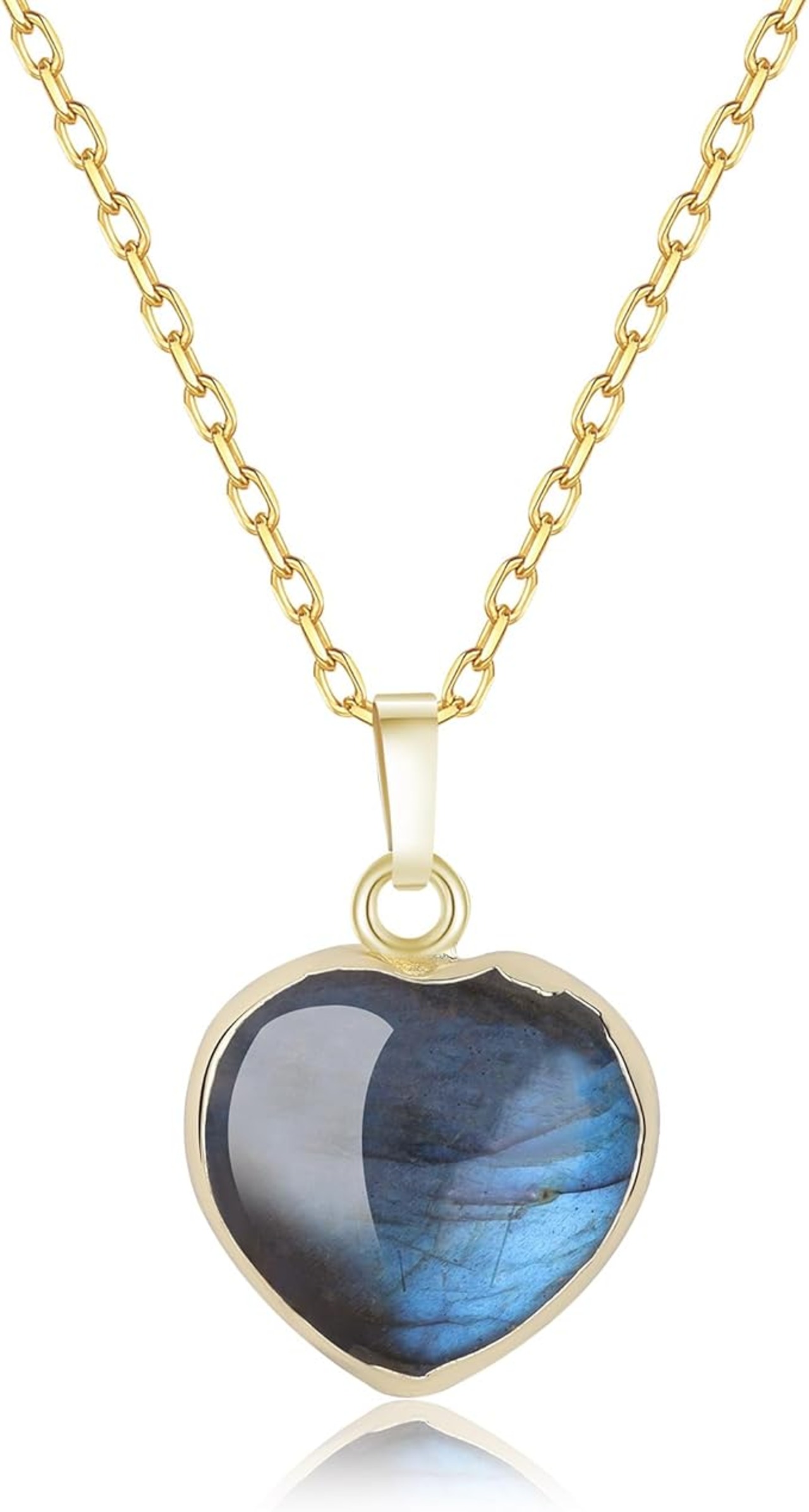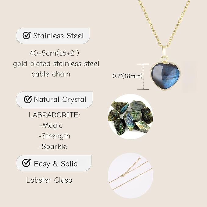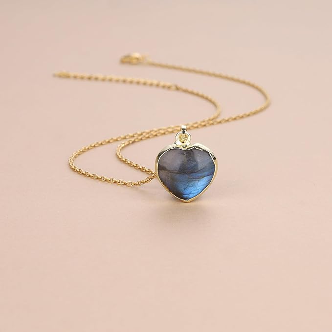 [コアイ] ラブラドライト ハート 開運 パワーストーンネックレス レディース a