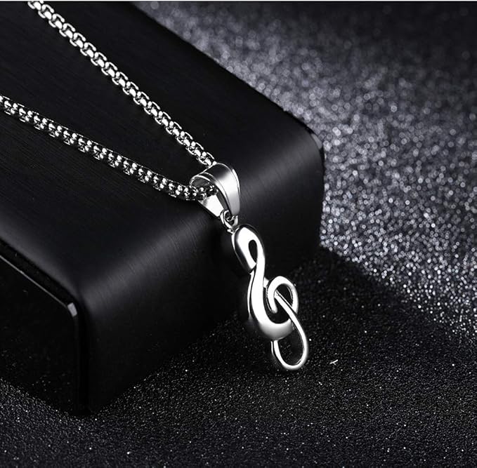 [Rockyu] ネックレス メンズ 音符 音楽記号 ペンダント ステンレス チェーン ロングチェーン 金属アレルギー対応 クリスマス バレンタインデー プレゼント