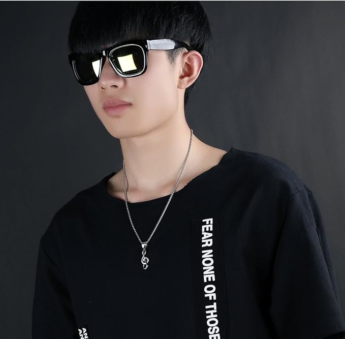 [Rockyu] ネックレス メンズ 音符 音楽記号 ペンダント ステンレス チェーン ロングチェーン 金属アレルギー対応 クリスマス バレンタインデー プレゼント a