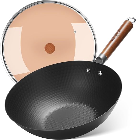 WANGYUANJI フライパン 30cm 鉄中華鍋 深型 炒め鍋 軽い鍋 ih ガス対応 蓋付き 錆びにくい 北京鍋 蓋付き 中華料理店 レストラン 家庭用 a