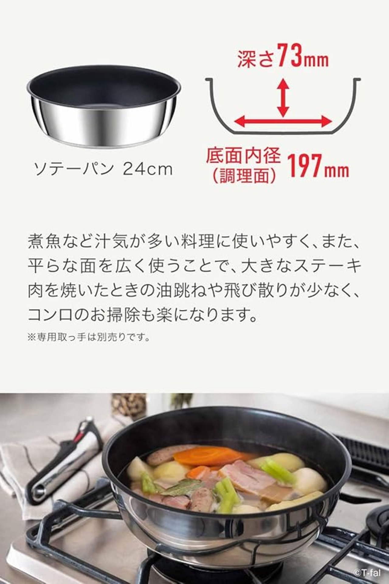 ティファール 取っ手のとれる 炒め鍋 24cm 深型 フライパン IH ガス火対応 PFOAなどの有害物質不使用 「インジニオ・ネオ IHステンレス・アンリミテッド ソテーパン」 こびりつきにくさ長持ち ステンレス L97135 a