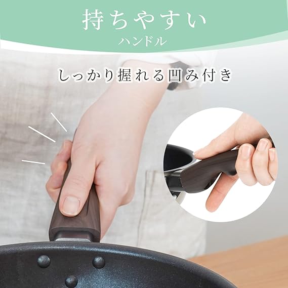 本体:アルミニウム合金、内面:ふっ素樹脂加工、外面:焼付塗装、底面:ステンレス鋼