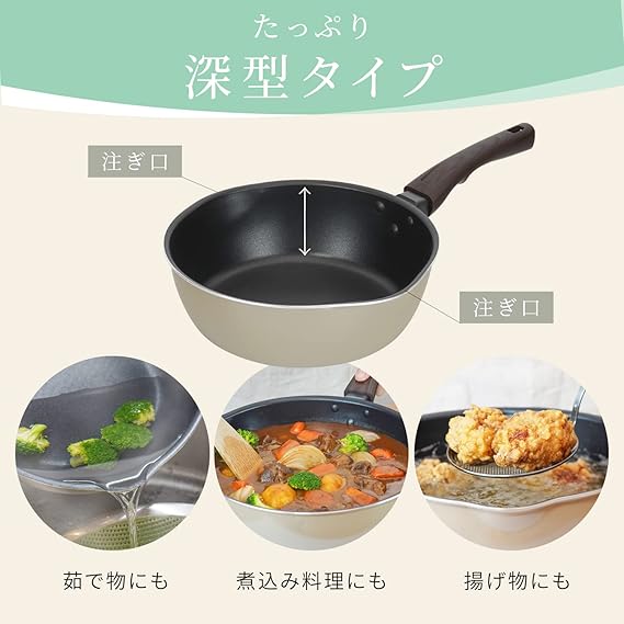和平フレイズ たっぷり深型 フライパン 22cm IH対応 ガス PFOAフリー ふっ素樹脂加工 ディアエクリュ RB-2669 a