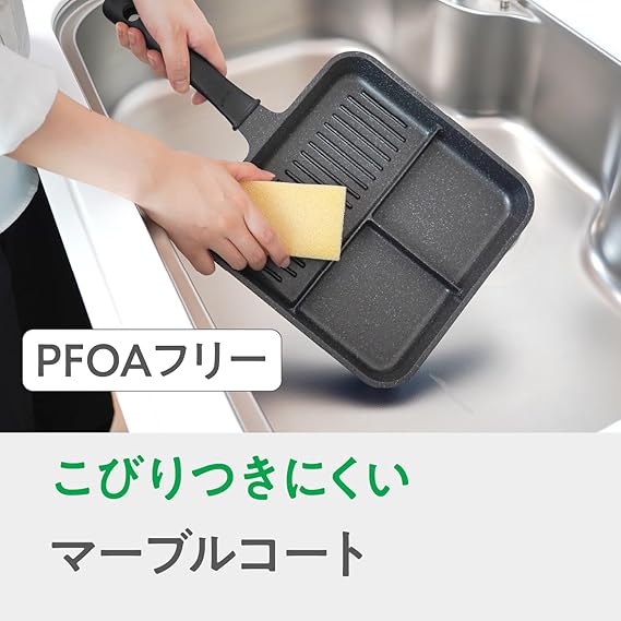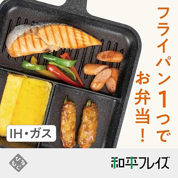 和平フレイズ お弁当 3品同時に調理 仕切りフライパン 24×24cm トリプルパン IH対応 ガス 時短 PFOAフリー ふっ素樹脂加工 ひるもぐ RB-2906 a