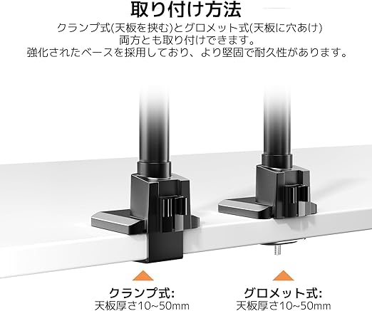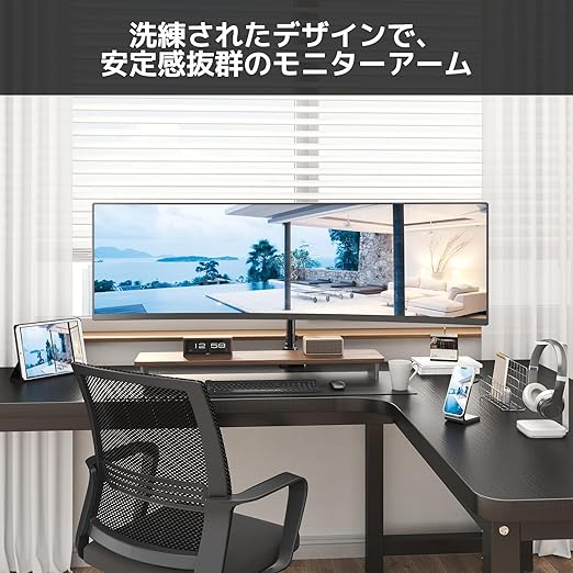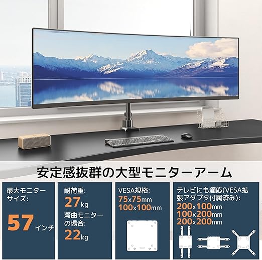 安定感抜群:高耐久設計により、最大57インチ、27kgまでのモニターをしっかりと支えることができます;強化されたベースは安定性を高め、デスクとモニターの両方をしっかり保護します;どんな環境でも安心して使用できる、信頼性の高い構造です