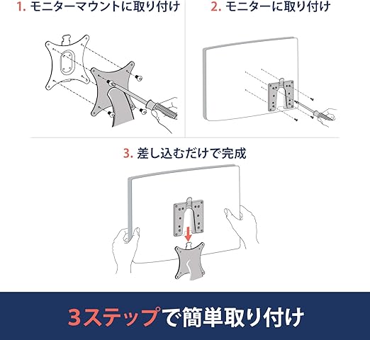 モニターを一瞬で取りつけ/取り外し可能にするブラケットです。