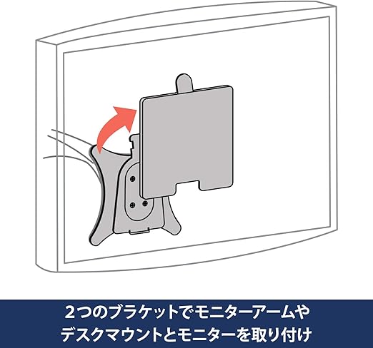 エルゴトロンのモニタアーム、ウォールマウント、デスクスタンドに取り付けできます。互換性のある製品はエルゴトロンホームページをご確認下さい。