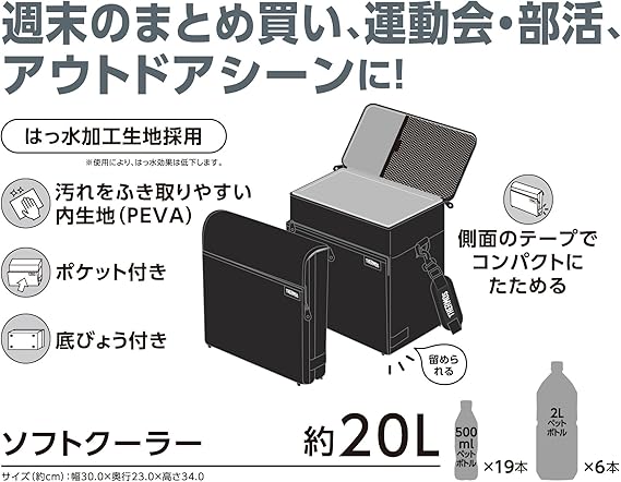 本体サイズ(約):幅30×奥行き23×高さ34cm、本体重量(約):600g、容量:20L