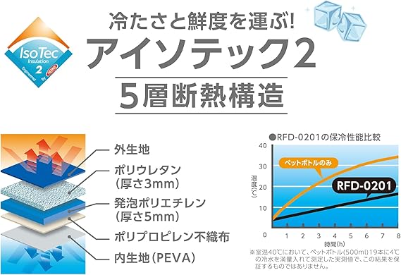 素材:外生地:ポリエステル(はっ水) / 内生地:PEVA / クッション(断熱材):ポリウレタン・発泡ポリエチレン・ポリプロピレン不織布