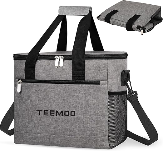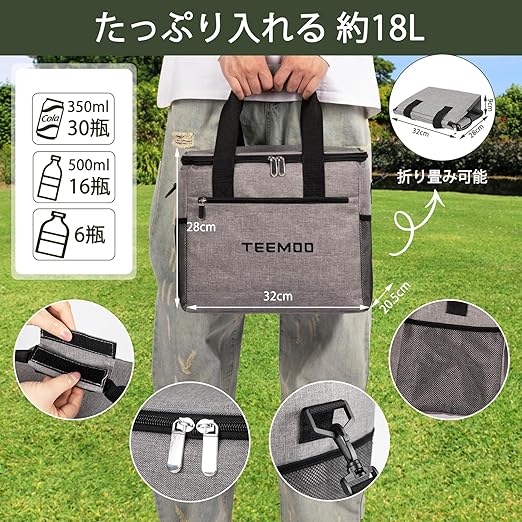 TEEMOO クーラーボックス 18L 33L 保冷バッグ 大容量 折り畳み収納 クーラーバッグ 保冷力 最強 断熱 保冷 保温 防水 軽量 手持ち 肩掛け キャンプ 釣り 花火 BBQ レジャー 運動会 グレー b