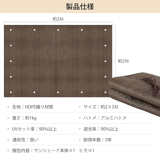 【通気性よい素材】日よけ止めシェードは通気性があり、透けて見えない高密度HDPE素材を採用して、熱い風は庭日除けシェードを通して、涼しい風に変えま