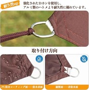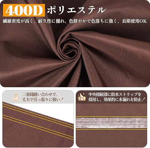 【高品質素材、長期間の信頼】弊社の防水シェードは、高品質の400Dポリエステル素材を採用しており、より高い繊維密度を有し、さらに高い引き裂き抵抗性と耐候性を発揮します。販の一般的300D材質と比較すると、素材を大幅に改良されて、さらに高い耐久性を備え、裂けにくさを大幅に向上させています。長期間の使用や強力な外力にも耐えられ、破損のリスクを最小限に抑えられます。耐久性と強度を求めるお客様に最適な選択です。