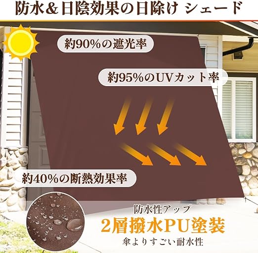 【優れた撥水力、雨よけ シェード】本製品は、独自の二重防水コーティング技術により、製品表面に