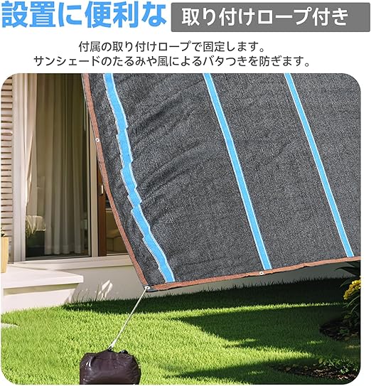 【簡単な取り付け】取り付けはロープで縛るだけで、簡単、安全、自由自在に日除けシェードをお取付けます。また、掃除も比較的簡単で、軽く水で洗うだけで済みます。日よけ止めシェードも折り畳んでコンパクトに収納できます。