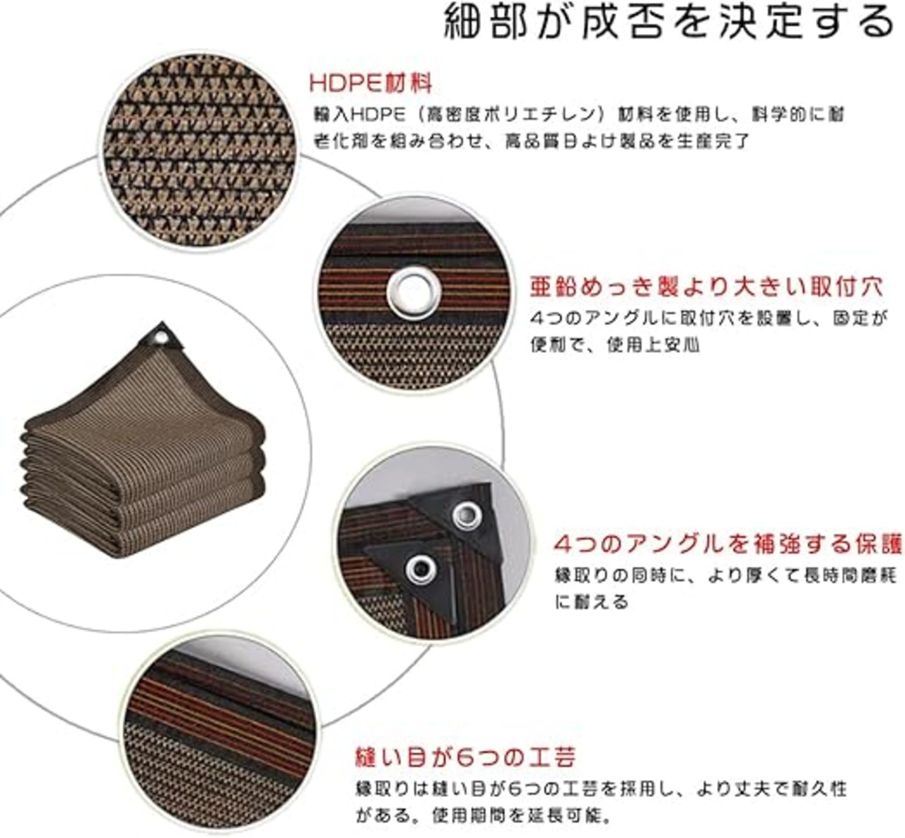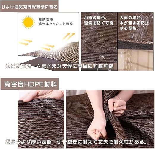 【高品質通気性材料】高密度ポリエチレン(HDPE)材料を使用して製造され、通気性が良く光を通さず、日光の照射熱を緩和します。形状記憶加工を施した遮光素材を採用し、型崩れや色あせがしにくく、美しく耐久性があります。汚れても水洗いができ、お手入れが簡単です。シーズンオフには折り畳んでコンパクトに収納できます。