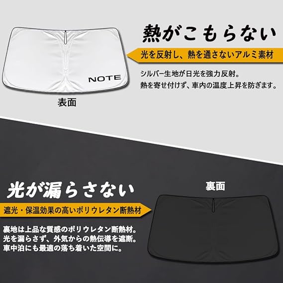 SAWAKAKI 日産 ノート E13 専用設計 サンシェード フロントガラス用 ロゴ付き 日焼け防止 断熱 UVカット 紫外線カット 暑さ対策 コンパクトに収納 a