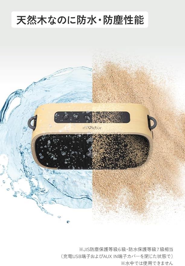 JVCケンウッド Victor SP-WS04BT-C Bluetooth スピーカー ワイヤレス 小型 最大15時間再生 ステレオペアリング ポータブルスピーカー 防水 防塵 お風呂 AUX対応 USB-C充電 ウッドデザイン バスウッド a