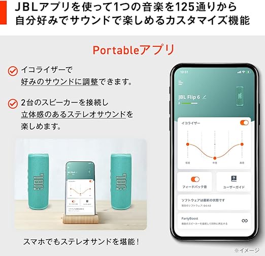 JBL FLIP 6 Bluetoothスピーカー ワイヤレス 30W IP67防塵防水 低音 イコライザー パッシブラジエーター 2台でステレオ (ティール) a