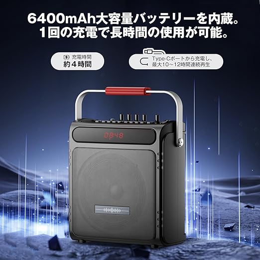 Moon River スピーカーセット カラオケセット 拡声器 Bluetooth 5.4対応 ワイヤレスマイク2本 高低音強化機能搭載 充電式 ポータブル カラオケマシン TF/USB/AUX/REC対応 ホームパーティー/室外/会議/防災/スピーチ/学校行事/セミナーなどに適用 日本語説明書付 a