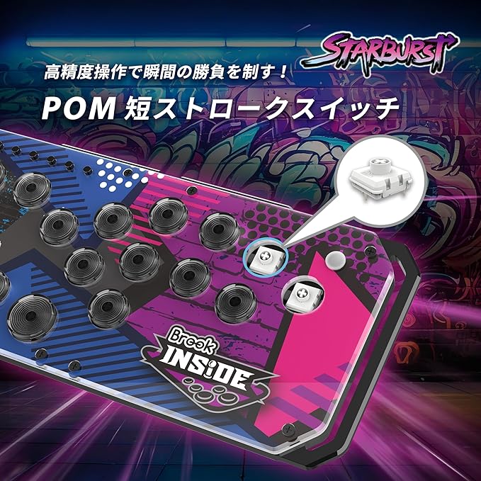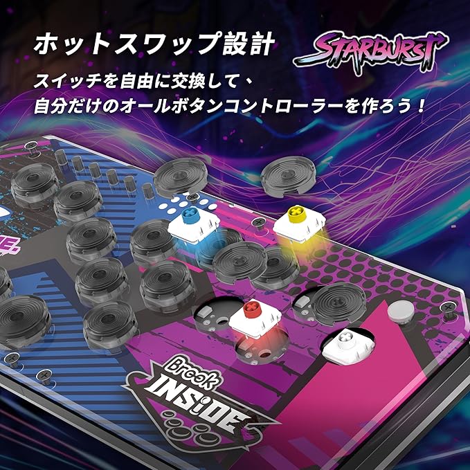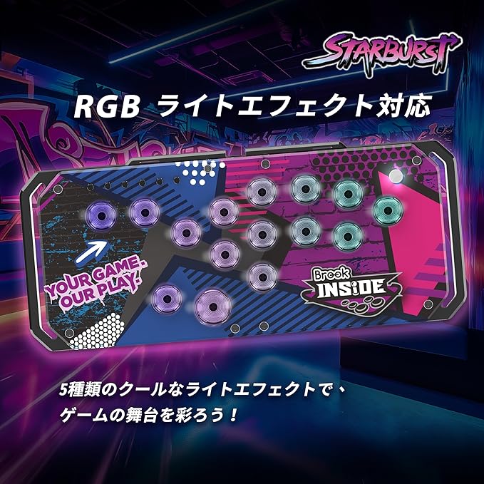 Brook Fighter Starburst レバーレス アケコン コントローラー 全ボタン型アーケードコントローラー 次世代コンソール対応 PS5 PS4 Xbox Switch Switch 2 Windows PC ターボ ジョイスティックモード 16キー 短いキーストローク 軽量対応 格闘ゲーム ホットスワップ RGB-LED 日本語説明書 ケース付 (ブラック) a