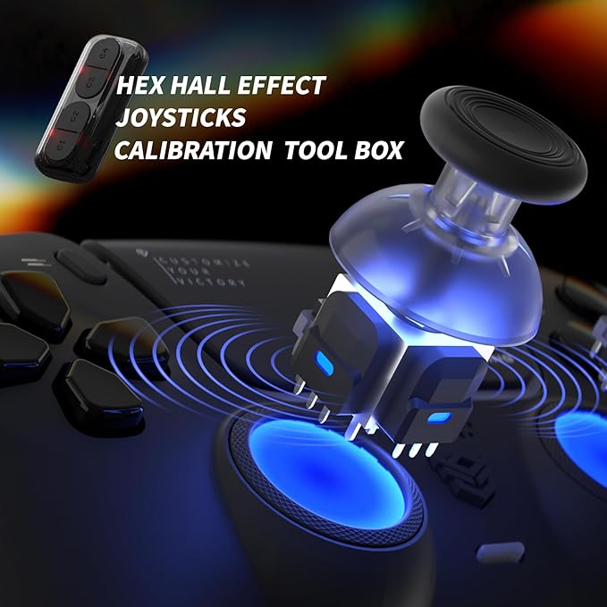 HEXGAMING ホールエフェクトバージョンps5やPCや携帯など対応用PHANTOM Proゲーミングコントローラー、4つの割り当て可能な背面ボタンが付いて、プロファイルが6種類登録できて、交換可能なアナログスティック8種類から選べ、調整できるアダプティブトリガー機能付いています【ホワイト】 a